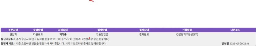 현재 전국 등기 시스템이 점검중입니다. 점검이 완료되는대로 처리후 문자드리겠습니다.
