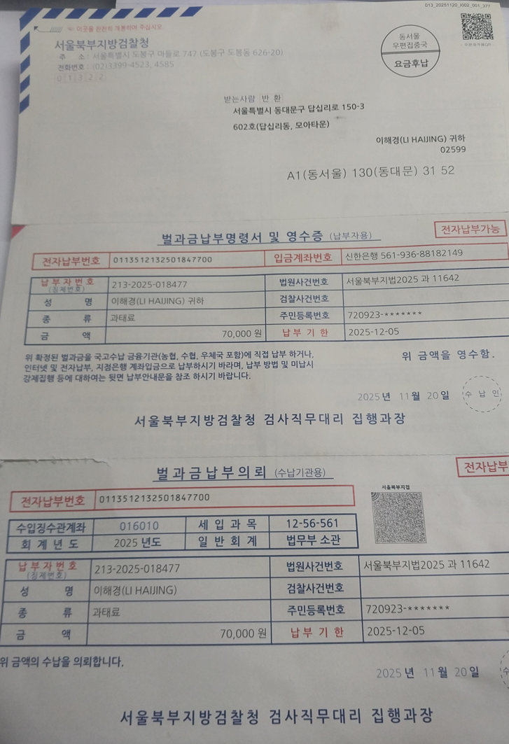 안녕하세요. 벌금이 나와서 요금은 냈지만